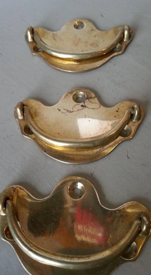 Set of 8 vintage solid brass cabinet drawer pulls.