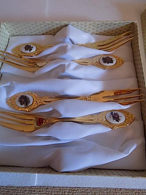 Set of Four 24 Carat Gold Plated EETRITE Cake Forks