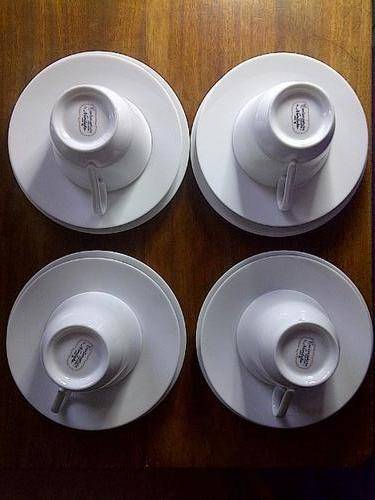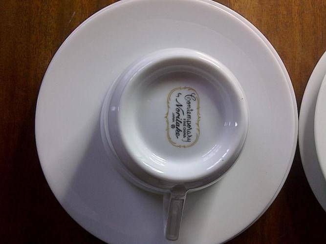 A set of four Noritake Trios, plain white in colour and in excellent condition. Each cup, saucer and sideplate stamped: Contemporary Fine China by Noritake Japan.