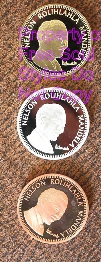 Set of Nelson Mandela 10 Years of Freedom Gold, Silver and Bronze Clad Medallions