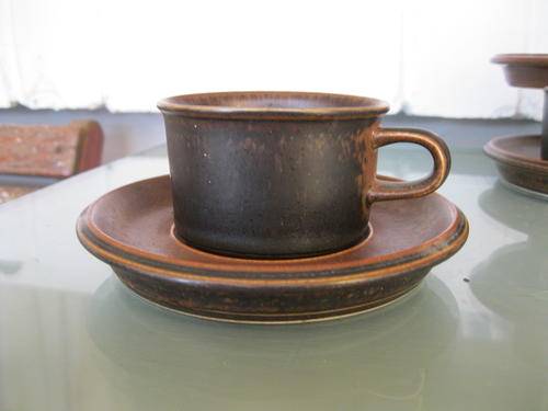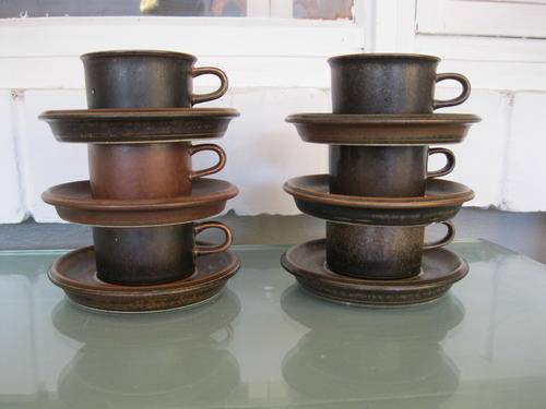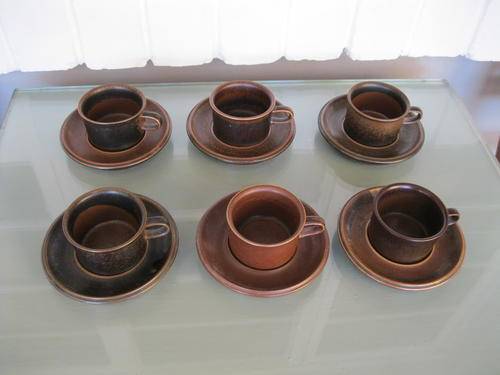 COLLECTABLE 1960S SET OF SIX ARABIA (RUSKA PATTERN) ESPRESSO CUPS WITH SAUCERS.