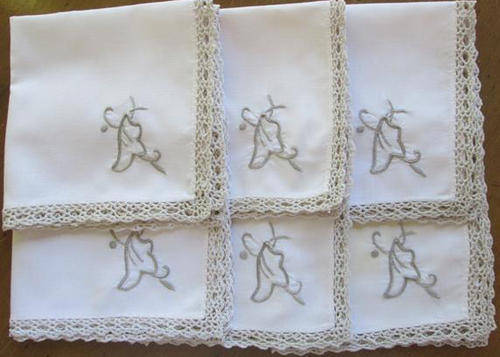 SET OF SIX MATCHING, VINTAGE LINEN SERVIETTES WITH A CONTRASTING HAND CROCHETED EDGING. SOME OF THE SERVIETTES HAVE LIGHT STAINING WHICH AFTER A SOAKING IN JIK CAN STILL BE SEEN, PERFECT FOR EVERY DAY USE. SIZE 29cm SQUARE. THESE SERVIETTES HAVE BEEN PREENED AND CLEANED AND JUST NEED A GENTLE WASH TO MAKE THEM YOUR OWN.