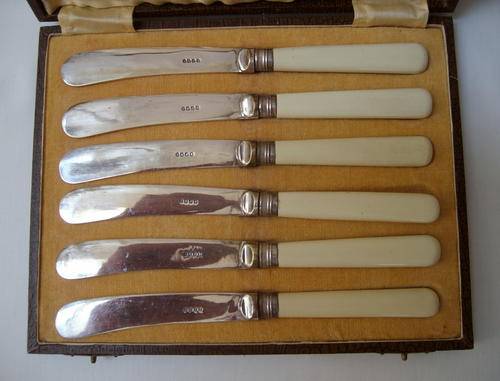 SET OF SIX VINTAGE SILVER PLATED BUTTER KNIVES c1930's