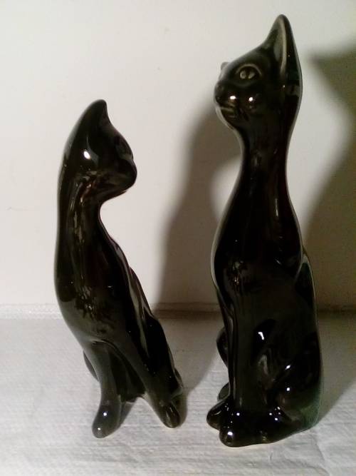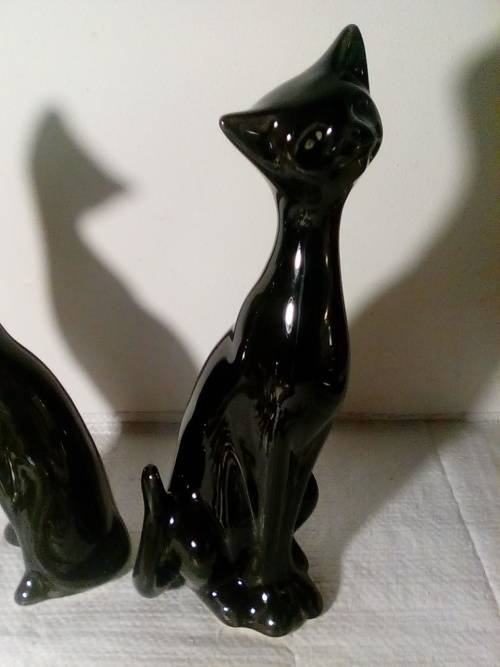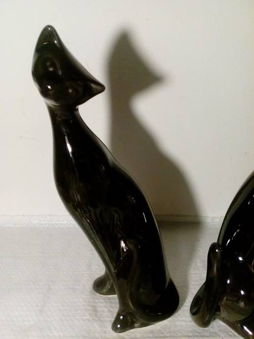 Set of Stylish & Sleek Glazed Ceramic Black Cats - Nice Sizes