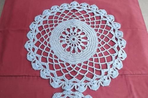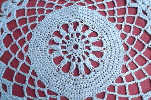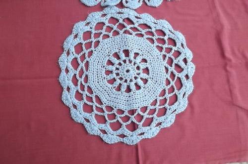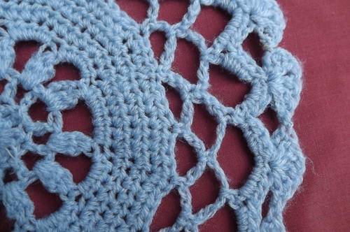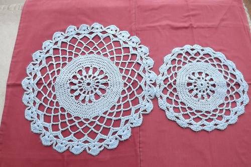 Set of Two Baby Blue Wool Crocheted Doilies - 29 cm and 43 cm Diameter.Good condition