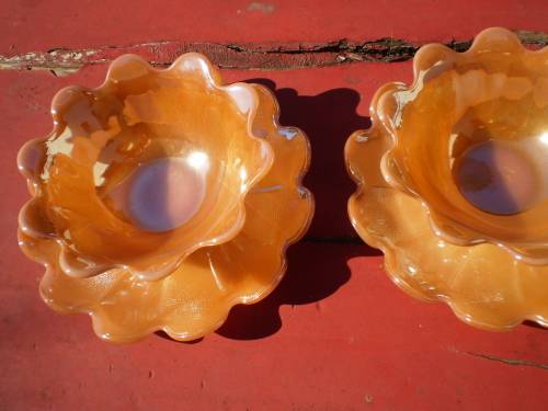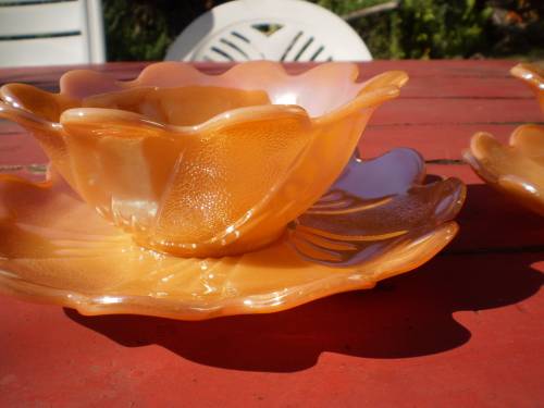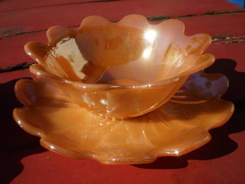 Set of Two Beautiful Large Flower Desert Bowls With Saucer