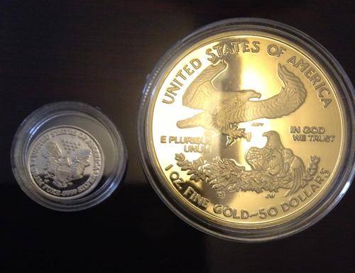 Set of USA 1oz fine gold 50 dollars copy and 1 gram silver .9999