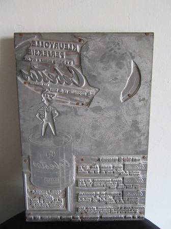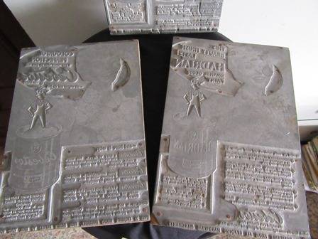 Set of Three Vintage Printing Plates advertising Paint, the plates are 21cm x 15cm are steel mounted on wood.