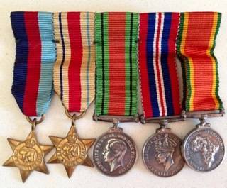 SET OF WORLD WAR II MEDALS LARGE AND MINIATURE INCLUDING MOUNTING BARS