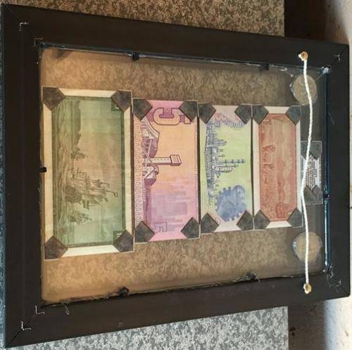 SET UNC NOTES & COINS - R10 + R5 + R2 + R1 + (2) R1 COINS OF REPUBLIC OF SOUTH AFRICA FRAMED