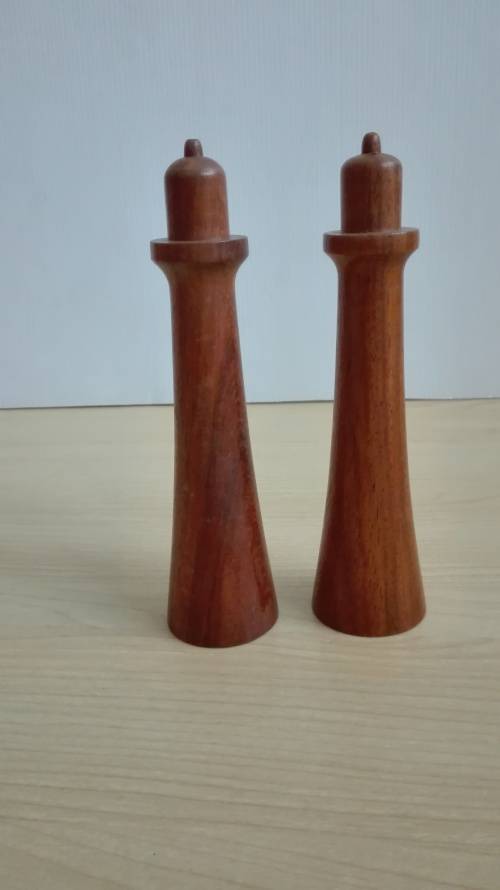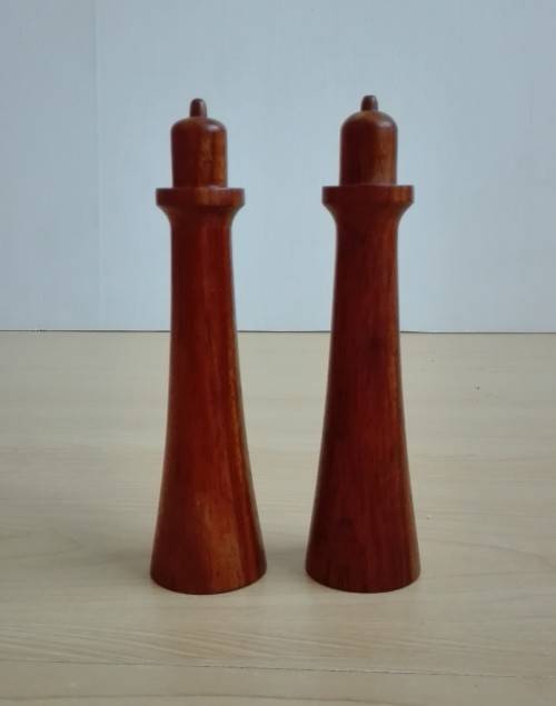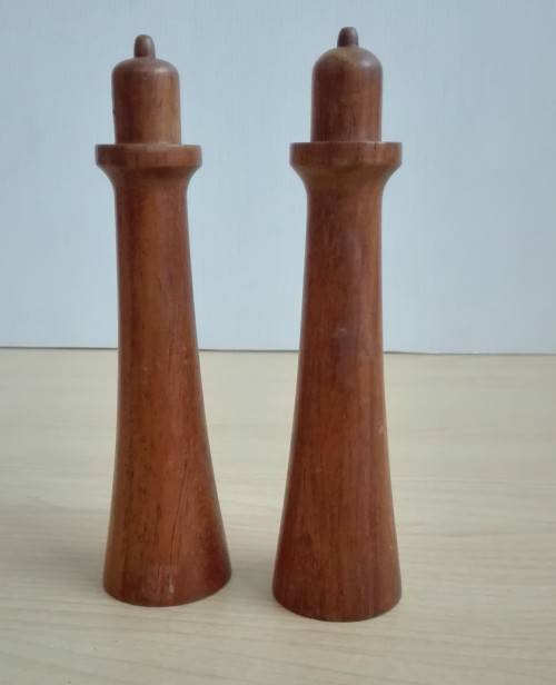 Set Wooden Mid Century Modern Salt & Pepper Shakers