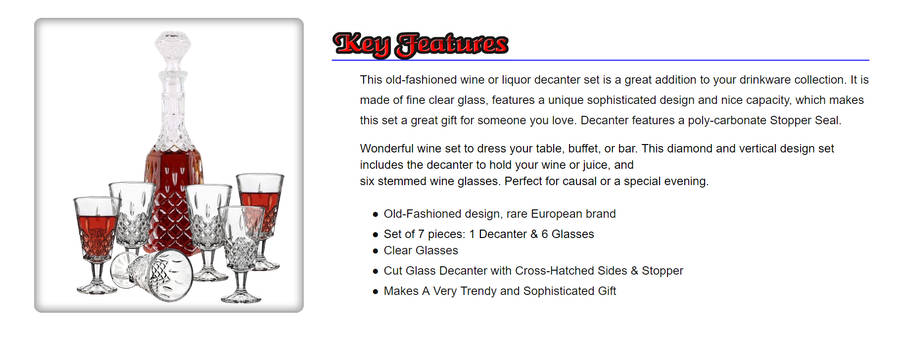 Seven (7) Piece Clear Whiskey and Wine Decanter Set - Ready To Ship Items