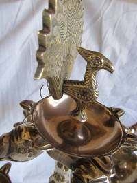 ![]() Bid with Confidence DUE TO HIGH POSTAGE RATES I RECOMMEND COMBINING WITH OTHER ITEMS. Seven Faced Standalone Brass Oil Lamp with the Four Extra Hanging Oils Lamps About 42cm in height. Knowledge: Many Hindus also perform an ‘arati’ with the traditional oil lamp. The lamp is lit in the morning or evening or both morning and evening. The light in the lamp symbolizes knowledge. It removes darkness, which symbolizes ignorance. The lighting of ‘diya’ or lamp at home is considered highly auspiciousness as it brings prosperity and good health.