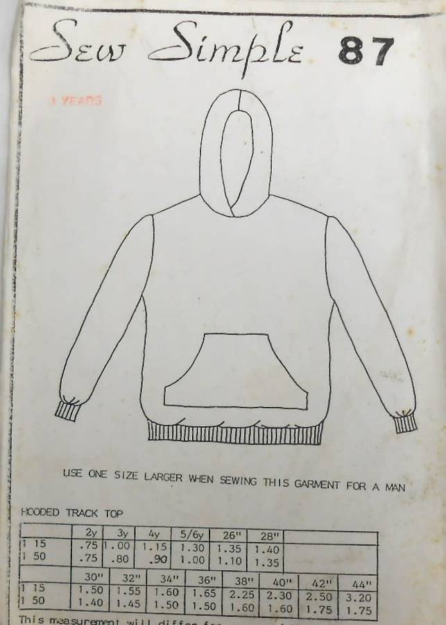 SEW SIMPLE 87 -HOODED TRACK TOP SIZE 3 YEARS-COMPLETE