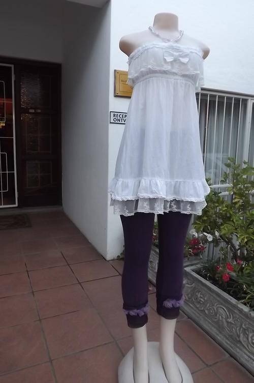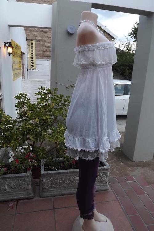 Sexy 100% Cotton White Top in size 8/32 - Youthful - decorated with lace - good condition
