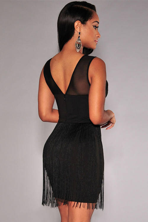 SEXY FRINGE SKIRT DETAIL MINI DRESS