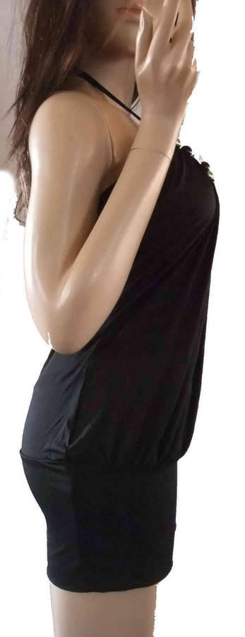 Sexy Halter Neck Beads Short Dress/Top Black Sizes 30-38