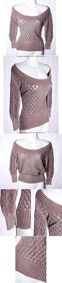 Sexy ladies dark maroon brown wide collar off-shoulder chunky knit look jersey top