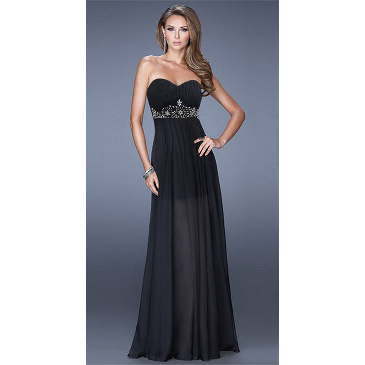 The sexy fashion black a-line sweetheart neck with padded bra empire waist ruffles beading chiffon floor-length gown.