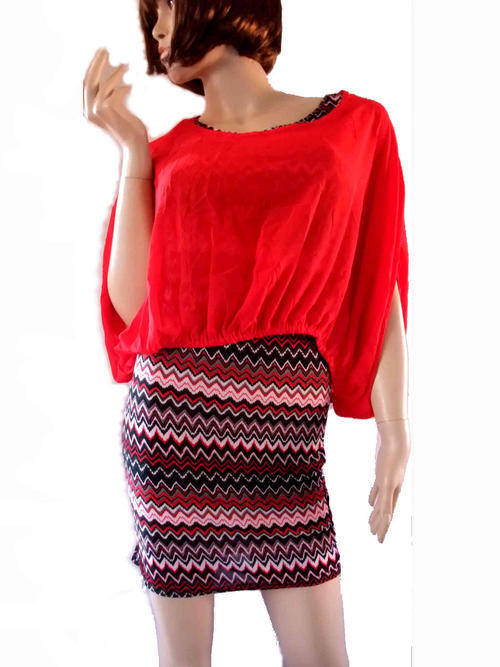 Sexy Slim Short Dress With Flutter Top Red Size 38