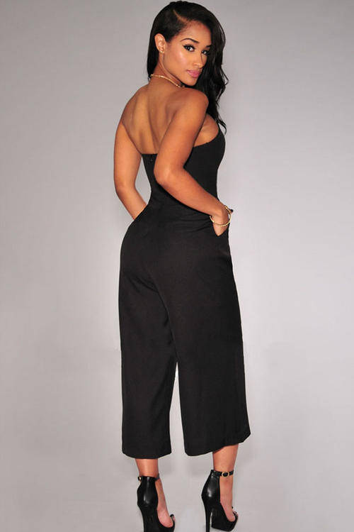SEXY STRAPLESS SOLID BLACK JUMPSUIT