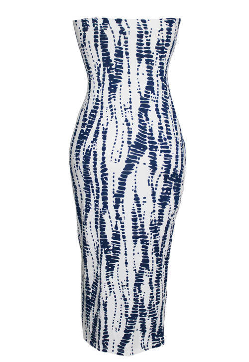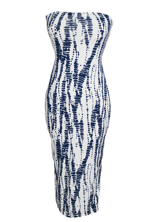 SEXY STRAPLESS TIE DYE PRINT MAXI DRESS