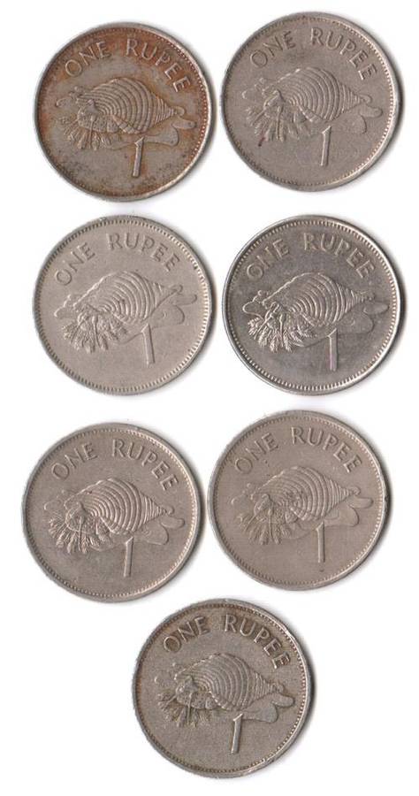 Seychelles 1 Rupee 1982, 1992 (x2), 1995, 1997 (x2) & 2007