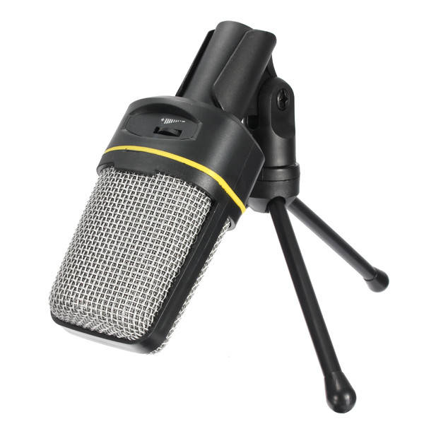 SF-920 Multimedia Studio Wired Condenser Microphone with Tripod Stand Features: Special design for chatting over QQ,MSN,SKYPE play speech and singing on the internet. 3.5mm stereo jack plug fits for all kinds of PC. Multimedia and multifunctional. High quality mic, perfect voice recorder. Plug and play, no extra gear needed. Noisy cancellation. Conveniently set with the help of the mini desktop tripod (Included). High-performance microphone accurately reproduces sound. USB plug works with any USB-equipped computer. Desktop mic stand, mic clip. Having this, you will hold a crazy party with friends at home. Specifications: 1. Sensitivity: -55dB±2dB 2. Directivity: noise canceling 3. Impedance: ≤ 2.2K Ω 4. Sensitivity reduction: within -3dB at 1V 5. Operation voltage: 1.5V 6. Frequency response: 50Hz -16KHz 7. S/N ratio: more than 36dB 8. Cord length: about 2m Package: 1× Condenser Microphone 1× Mini Desktop Tripod
