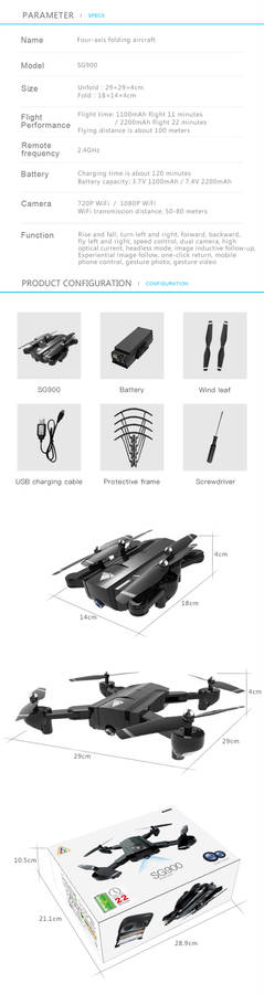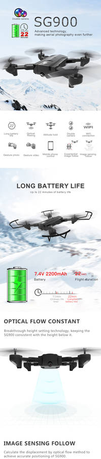 Package weight: 0.69 kgSG900 WiFi FPV Foldable Drone With Double 720P HD Camera Optical Flow Positioning RC Quadcopter RTF