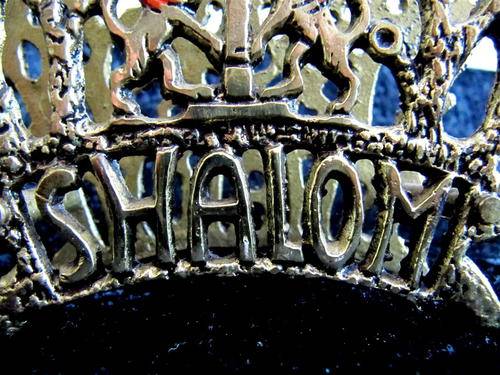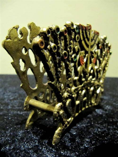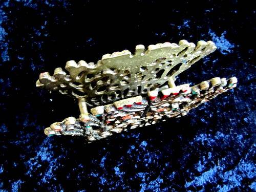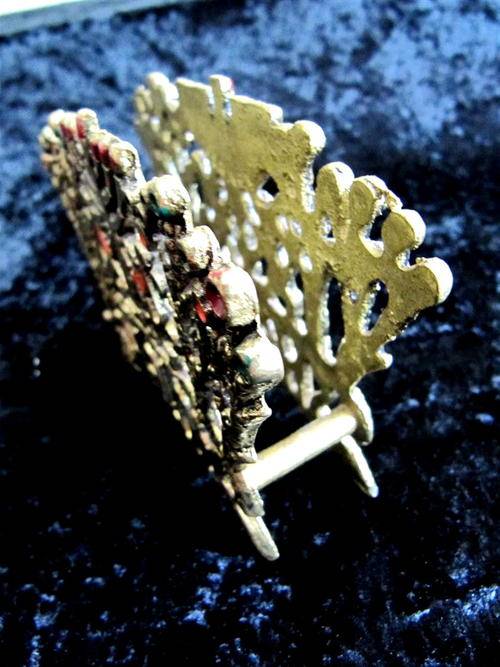 This letter / napkin holder is made from solid cast brass, and finished off in hand painted enamel accents. See photos for the lovely details.