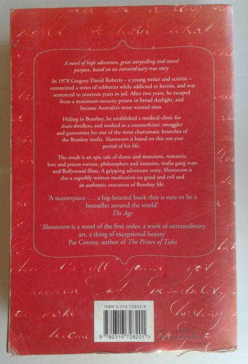 Shantaram by Gregory David Roberts. Fair condition with a tear in the cover and stains.