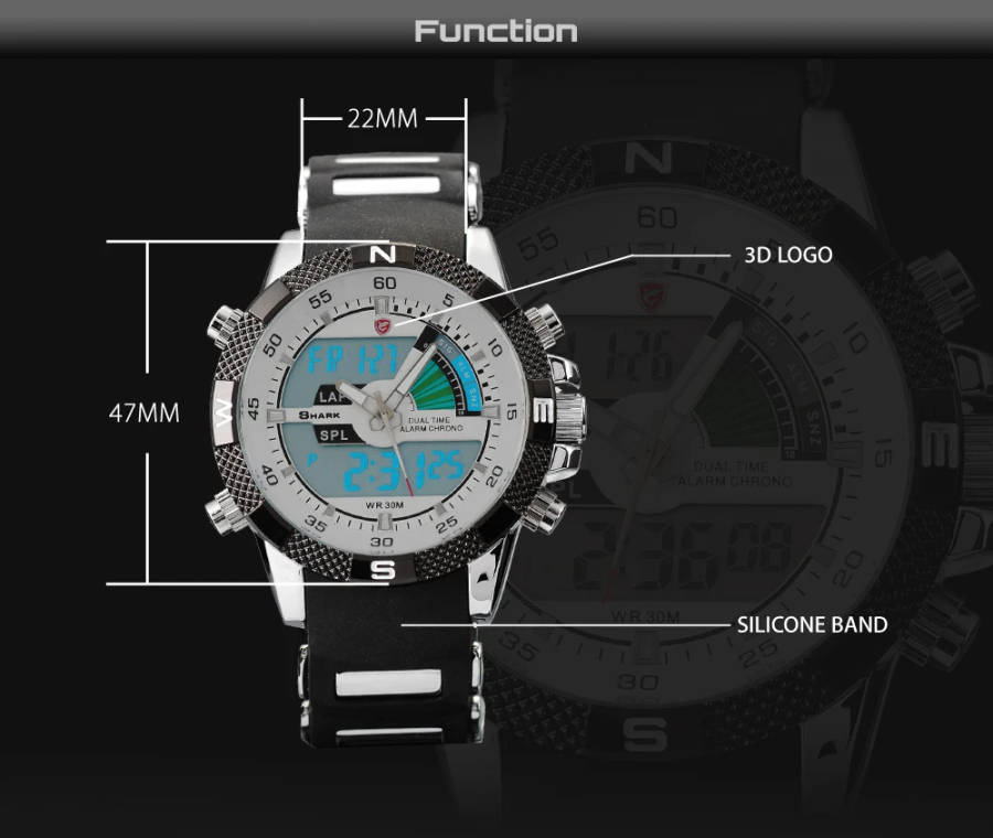 SHARK DUAL LED WATCH PORBEAGLE CHRONOGRAPH WATCH