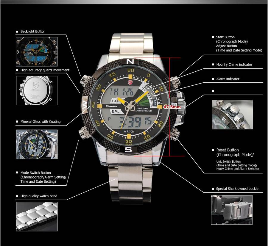 - DOUBLE Movement with the latest Japan Quartz Technology. Chronograph Analog and Digital.