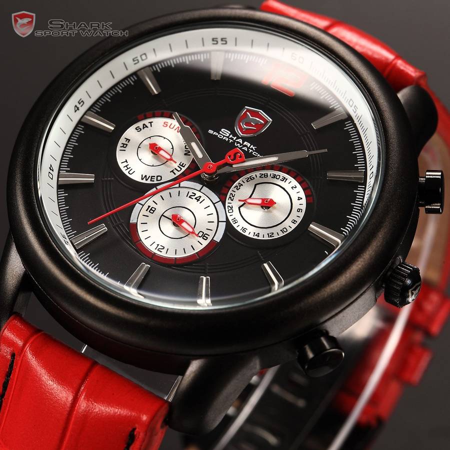SHARK Relogio F1 Red Leather DUAL TIME 47mm Chrono Watch W/ BOX, PAPERS, LOADED!!