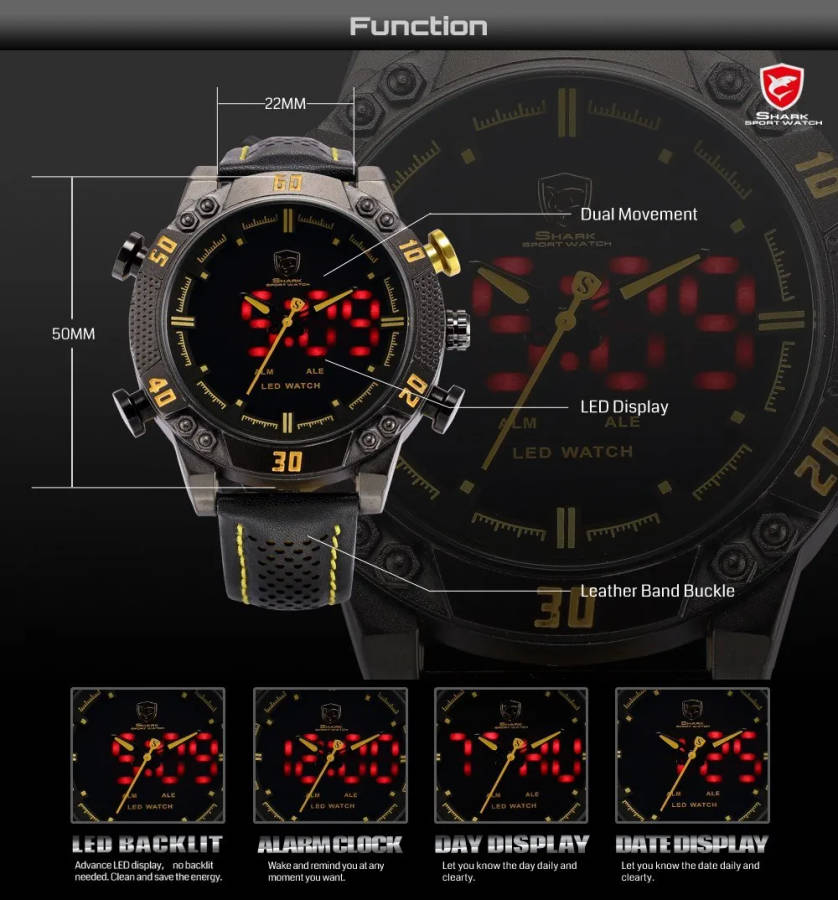 SHARK The Kitefin shark Dual Analog/Digital Dual Movement 50MM Watch BRAND NEW SHARK The Kitefin shark Dual Analog/Digital Dual Movement 50MM Watch BRAND NEW