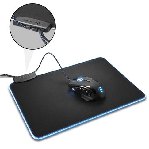 With the 1337 RGB Gaming Mat, Sharkoon expands their popular 1337 series with a multicolored highlight. Like the other gaming mats of the series, the 1337 RGB offers an extremely robust textile surface with optimum gliding properties as well as a nonslip rubber base for a perfect hold. However, the flexible, soft-surfaced mat is now bordered by RGB illumination, transforming a discreet mouse pad into a piece of effective gaming equipment. For an uninterrupted and perfectly eye-catching glow, the illumination is stitched on with transparent nylon.