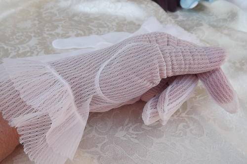 Sheer off white frilled gloves.Size 7.5.Suitable for wedding/special occasion.Very good condition