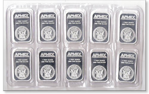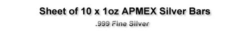 Single 1oz APMEX Silver Bar | Example of what you will receive. Sheet of 10 x 1oz APMEX Silver Bars |