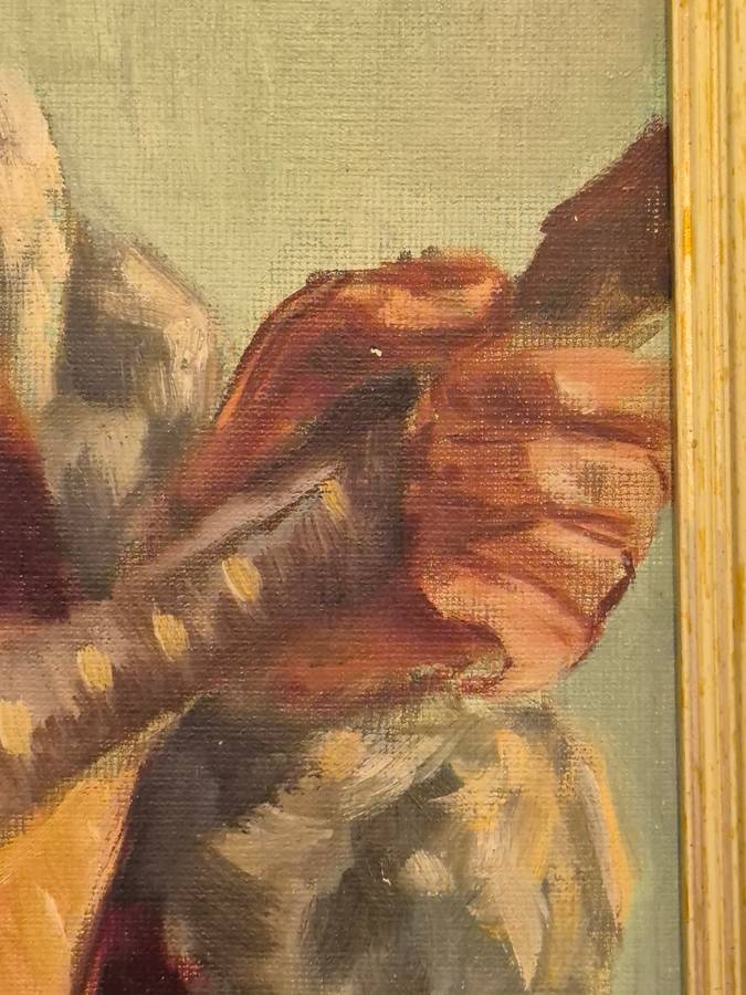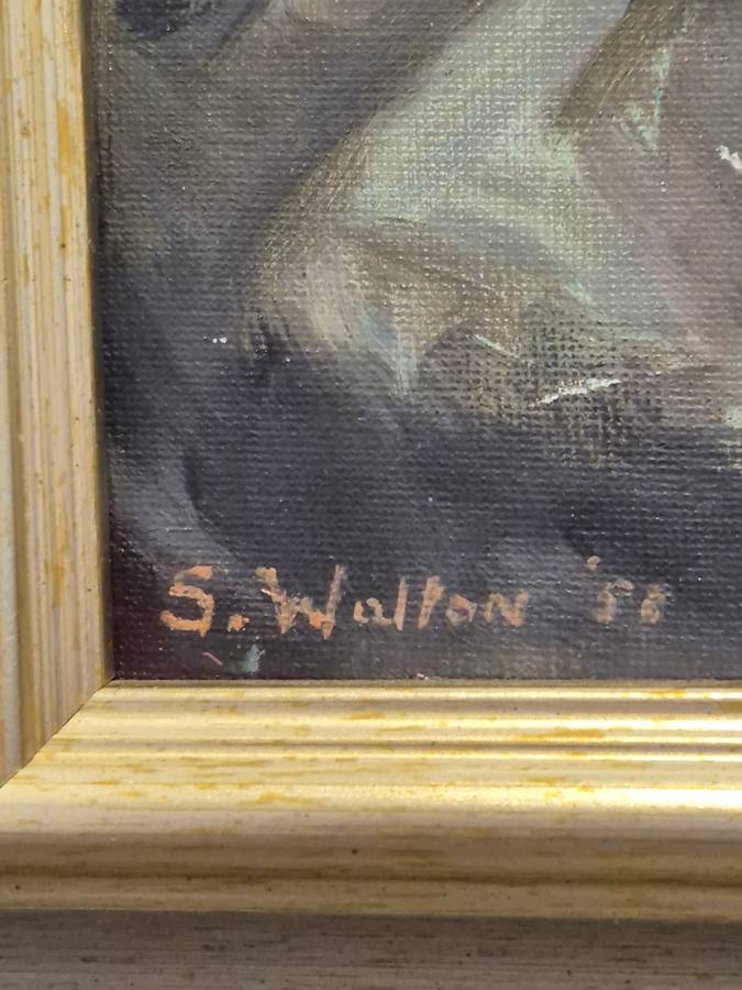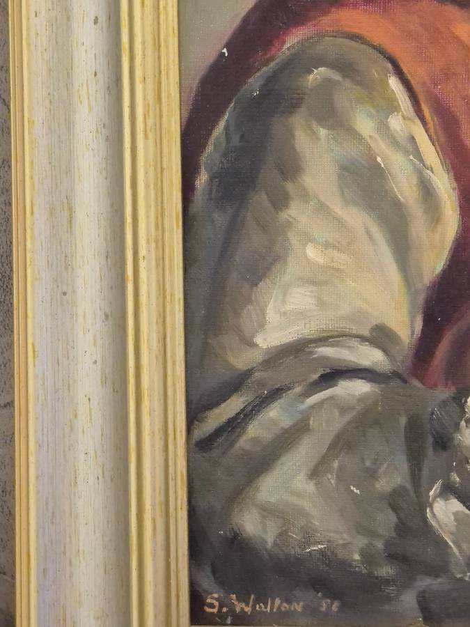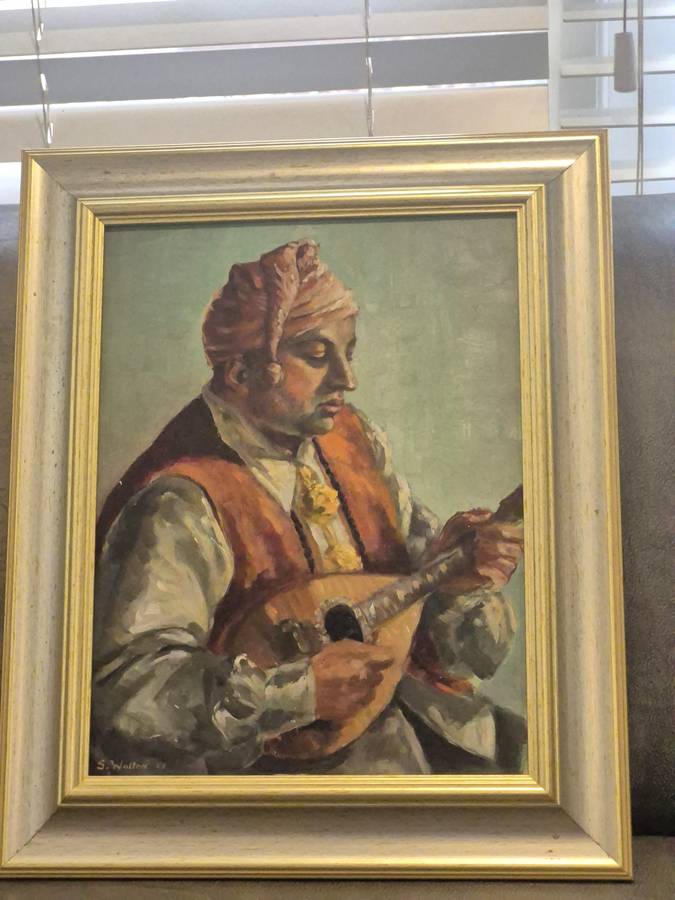 Signed and dated 1950 in the painting. Sheila Walton has painted a traditional Sicilian mandolin player with his traditional cap and waistcoat and neck tie. Captures the evening light on the musician beautifully with skillful painting, Very good condition frame. All in excellent condition.