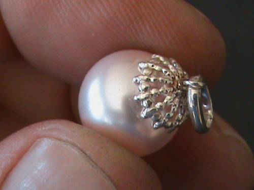 SHELL PEARL PENDANT , SET IN SOLID STERLING SILVER. LIGHT PINKISH COLOUR