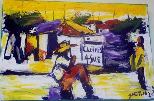 Shelton Khumalo, 2011, 50 x 38 x 4 cms, Oil on Canvas, "Midday", Emerging Talent Artist, box framed. Under the tutelage of Moses Masoko, this Artist walks in the same shoes as the great Gerard Sekoto. Packaged and Posted R 65 countrywide.