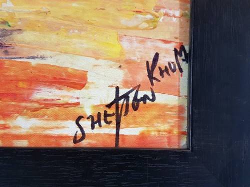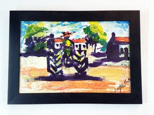 A beautiful painting by this talented artist! The composition is unique and expertly executed! This beauty measures 52cm x 34cm and the frame measures 61cm x 44cm. Offered at a low price, bid now!