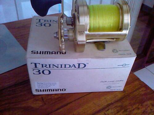 The Cadillac of reels, the Shimano Trinidad is sure to please. Features include a Forged aluminum frame, left sideplate, and spool, Stamped aluminum right sideplate, Manual clutch lever, Rod clamp, A-RB Anti-Rust Bearings, Super Stopper, Assist stopper, High Efficiency Gearing, Dartainium Drag, Clicking drag adjustment, Adjustable clicker, plus an Adjustable Handle.