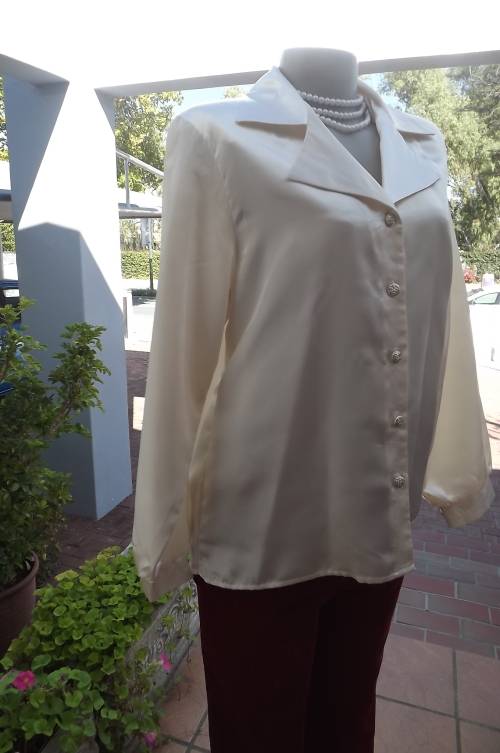 Shiny rich cream colour glam long sleeve blouse.Button down with open collar.Size 34/10.As new.