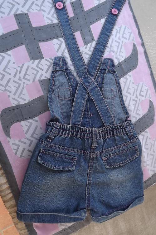 Short Denim Dungaree with pink buttons for baby girl 18 to 24 months