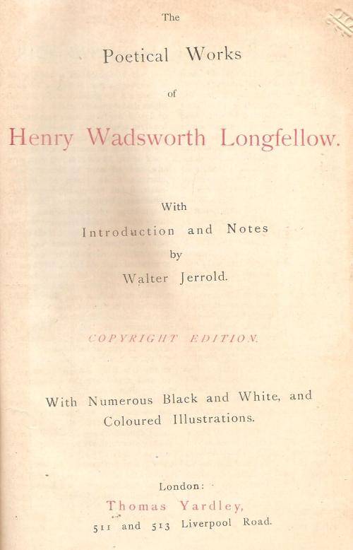 The Poetical Works of Henry Wasdsworth Longfellow Intro and Notes By: Walter Jerrold