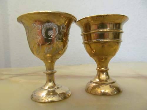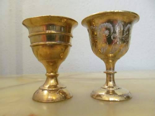 VINTAGE LOT OF TWO BRASS SHOT GOBLETS - EACH DIFFERENT AND COLLECTABLE