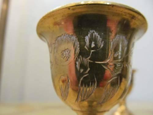 THE LOT CONSISTS OF THE FOLLOWING TWO BRASS SHOT GOBLETS -