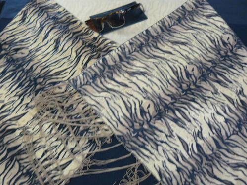 SCARVE IS 52 CM WIDE X 2 METERS LONG WITH FRINGE