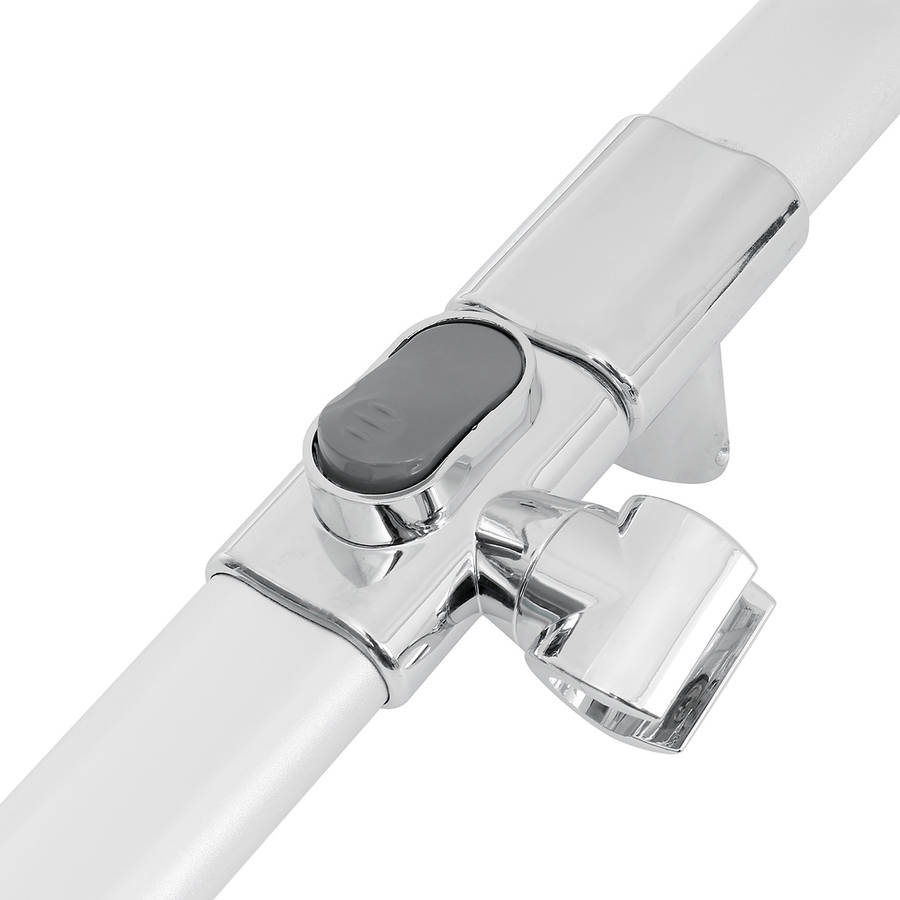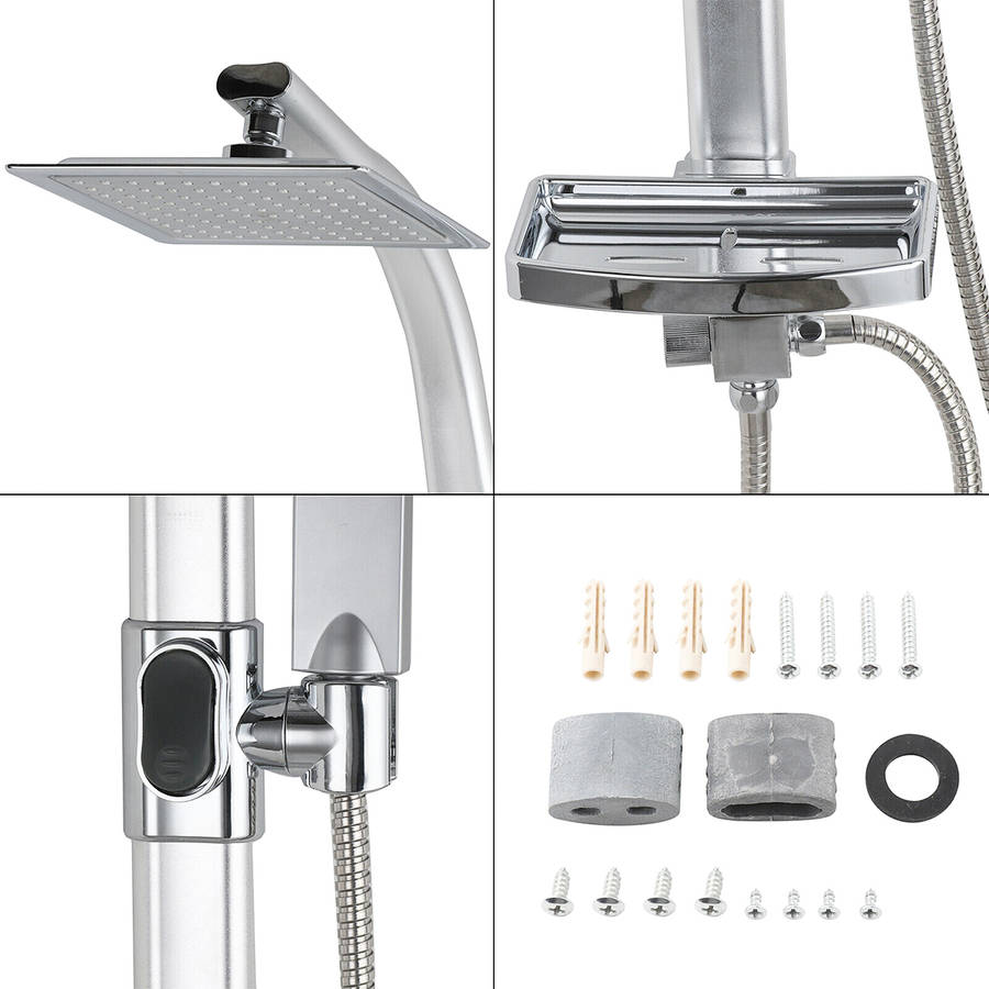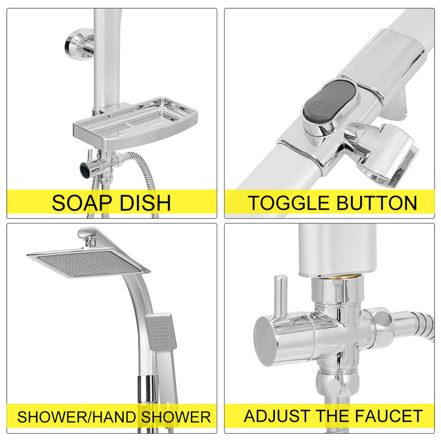 Slide | Finished product: chrome plated Material: Brass in the shunt, stainless steel in the guide rail The length of the guide rail is adjustable. The conversion from shower to hand shower. Material: solid brass body and ceramic disc box Entrance: 1/2 inch, Oulet: 1/2 inch |